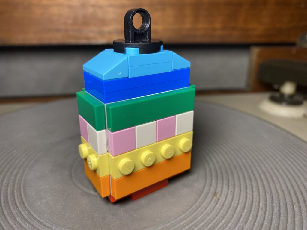 Na Wielkanoc 2025 r. Lego uraczyło nas kolorową pisanką. Można ją było dostać w akcji „Zbuduj i weź” w dniach 16 i 17.04. Jeśli ktoś praktykuje ubieranie świątecznego wielkanocnego drzewka (jestem ciekaw, czy jest gdzieś taka tradycja) może ją śmiało na nim powiesić za pomocą uchwytu widocznego za zdjęciu (był w zestawie) lub wykorzystać go do przymocowania pisanki do święconki. Jeśli nie, nic nie stoi na przeszkodzie, żeby w sezonie zimowym przerobić pisankę na bombkę i powiesić na bożonarodzeniowym drzewku 🙂